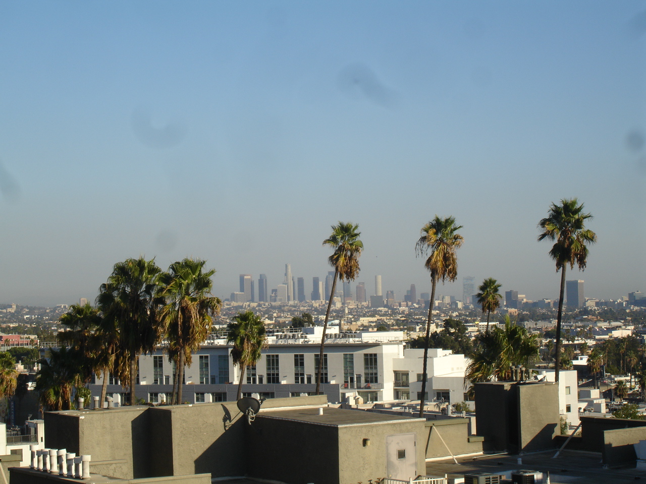 Yeah, it’s some freeways and warehouses in the foreground but having this perspective right outside your window (and 70° weather) is pretty fucking rad. Later on I’d snuck down onto Adam’s lower neighbor’s front porch (kind of by accident but not really) and got this slightly cooler shot.